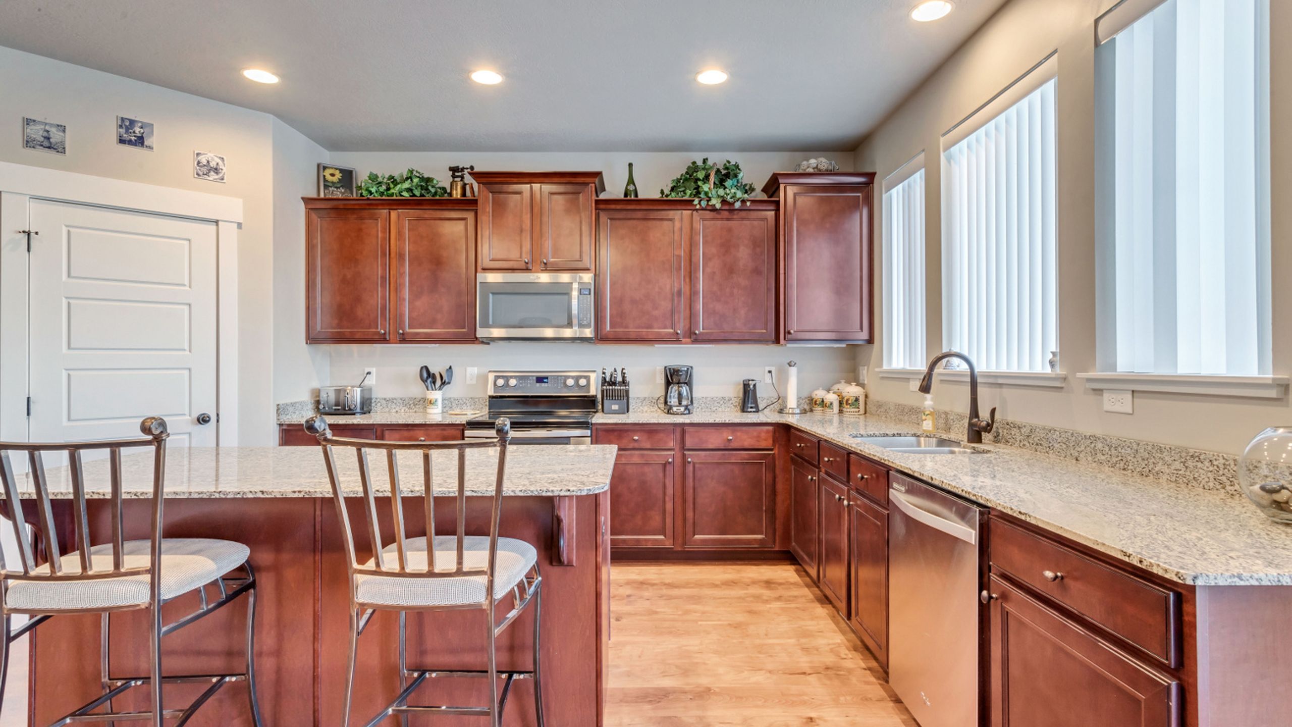 From the moment one steps inside this beautiful kitchen, they are surrounded by luxurious details. The sparkling granite countertops provide ample space for cooking and baking, while the under-cabinet lighting provides additional illumination when needed. Not to mention, the spacious pantry is perfect for storing provisions and supplies in an organized fashion. This kitchen truly has elegance and practicality, all in one convenient place.
